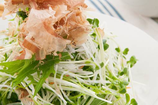 細目に千切りにするだけで食べる事が出来る、大根サラダ。